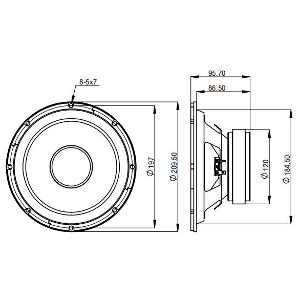 8FHW 被设计为一款中音扬声器,其频率响应不仅能很好地延伸至低频段,在中频段的表现也十分出色。所有部件都经过了专门处理,以适应户外使用环境,纸盆和折环材料都添加了紫外线稳定剂。所使用的粘合剂确保了扬声器具备防水性能。纸盆采用聚丙烯材料,搭配橡胶折环。这种组合能够产生大量的低频音效,并且在中高频段也有良好的表现。