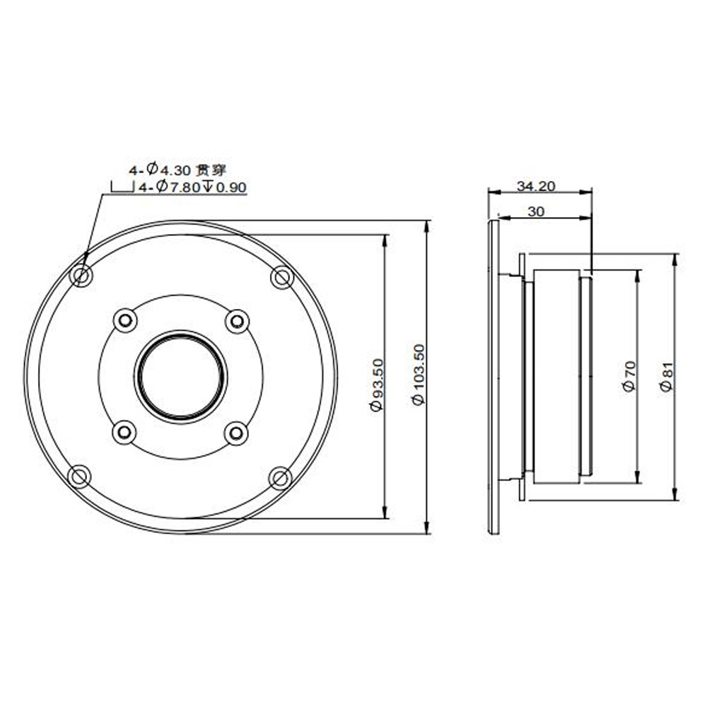 25TF铁氧体基高音扬声器专为高品质音频应用而设计。它采用铝制振膜,精心地连接到聚脂纤维振膜边缘上。此外,磁路系统和振膜子组件内置在载体中,随后会与我们的波导进一步组装。磁路可产生强劲且稳定的磁感应强度(B场)。其设计经过有限元方法(FEM)优化,具有小型谐振腔的特点。所有金属部件都经过涂层处理,以抵御恶劣天气。