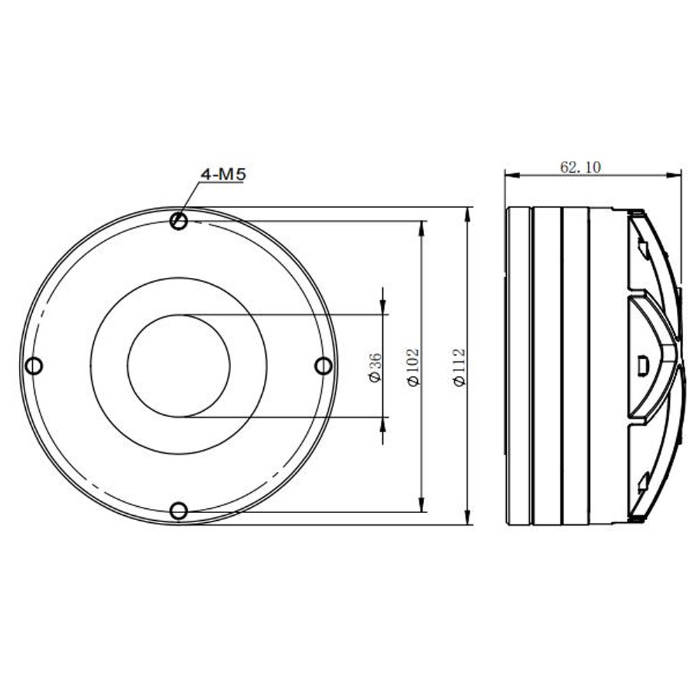 REDCATT公司将这款压缩驱动器的振膜和悬边设计为一个整体部件。音圈骨架以“L”型夹层的形式连接在振膜上。这种设计极大地改善了所有频率在振膜上的传输效果,具有良好的瞬态响应。它还显著提升了驱动器的功率处理能力。