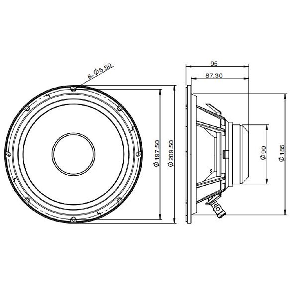 8NPM是一款高效(96dB 1瓦/1米)8英寸中低音扬声器,具有扩展的中频响应和高功率处理能力。8NPM使用轻质半压纸锥和双卷织物环绕。Spider由Nomex材料制成,形状经过优化,可实现良好控制的活塞运动。使用的高质量组件即使在高功率应用中也能确保持久的性能。所选的材料组合在极端条件下提供了卓越的强度、高效率和持续的输出。电源处理采用卡普顿前体材料的音圈能够承受超过280℃的峰值温度,远远超出了现代音频系统的热要求。前强度在音圈和锥体组件之间提供了理想的功率传输,并有助于减少失真伪影。通过将这种材料与最先进的粘合剂和我们的卷绕音圈技术相结合,8NPM提供了令人难以置信的高性能。